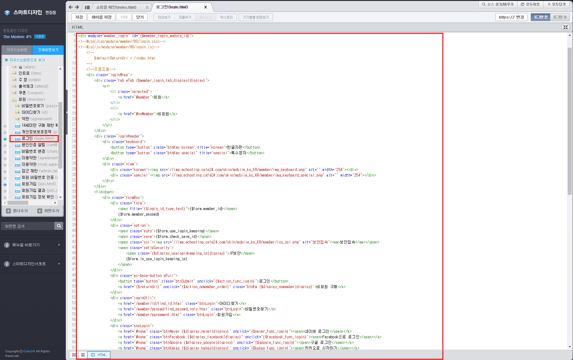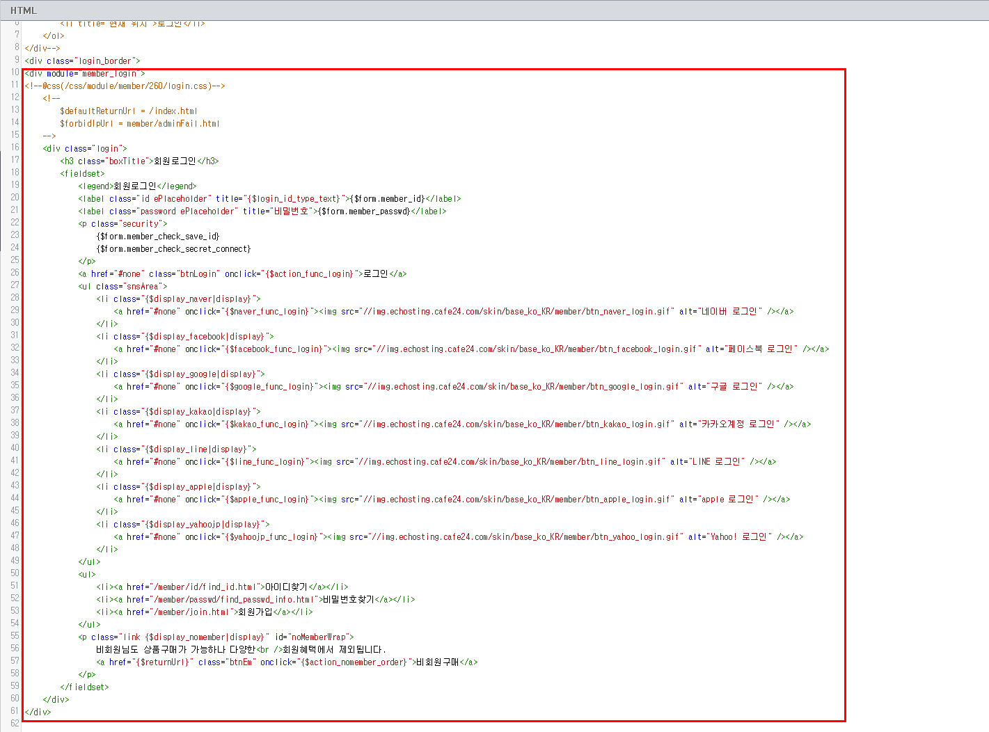 3) <div module="member_login">~</div> 영역을 전체 복사한다.