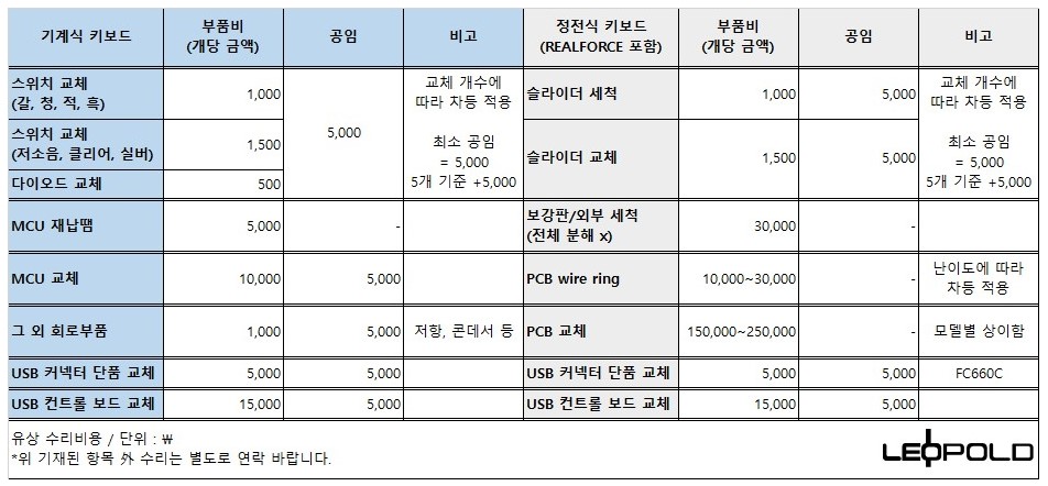 *AS관련 자세한 내용은 레오폴드 홈페이지를 참고 (https://www.leopold.co.kr/Shop/BoardView.php?BoTable=As&WrId=19361&page=1)