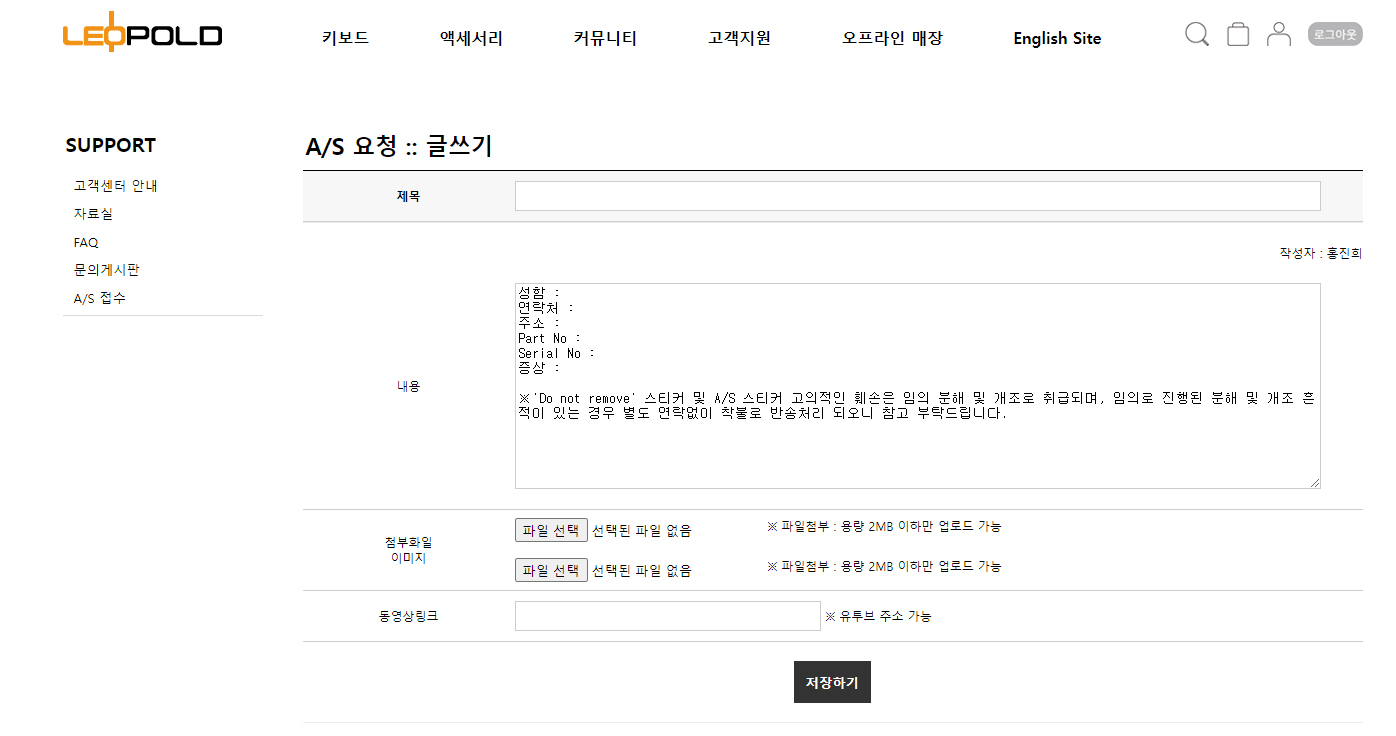 레오폴드 A/S접수하기