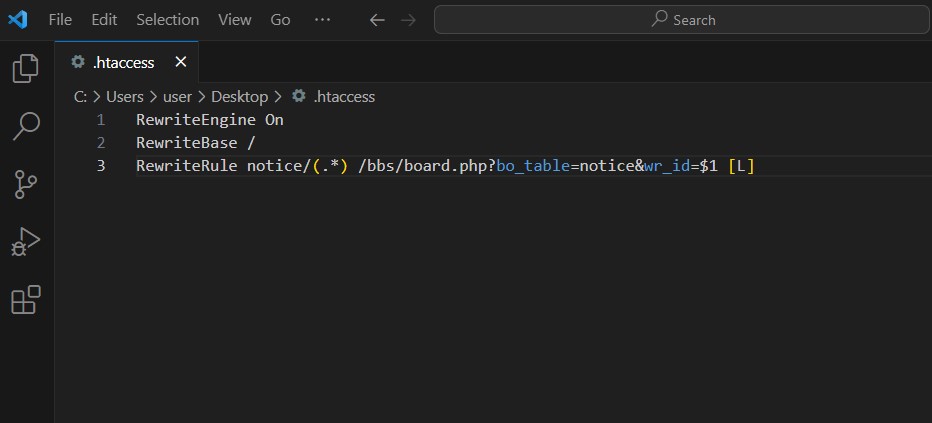 RewriteRule notice/(.*) /bbs/board.php?bo_table=notice&wr_id=$1 [L]