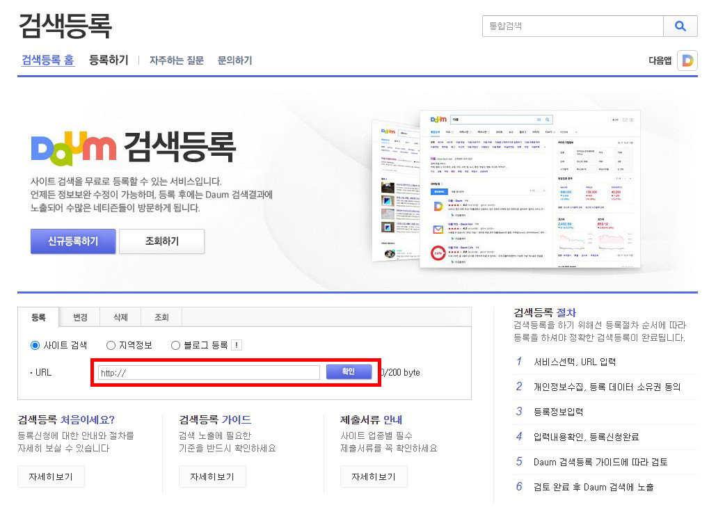 다음 사이트 검색 등록하기