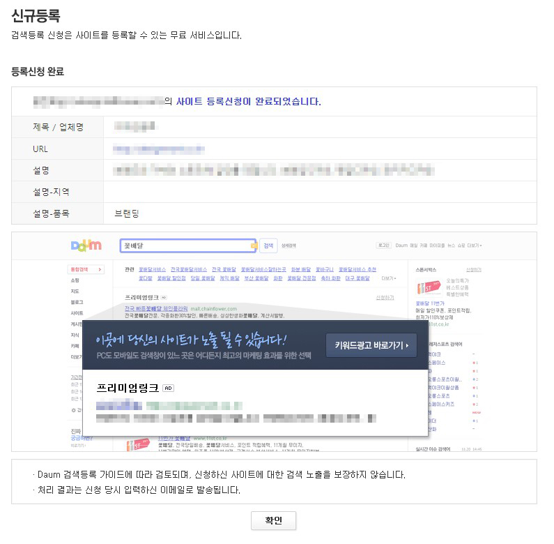 간단하게 다음 사이트 검색 등록 끝!