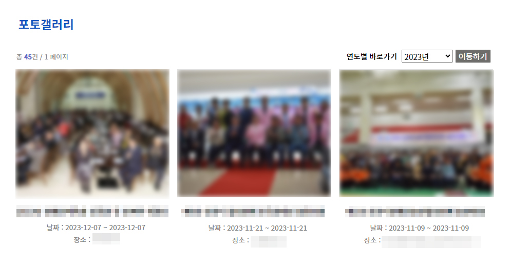 기본적으로 현재 연도에 해당하는 게시물만 보여지며, 게시판 우측 상단에서 연도를 선택한 뒤 '이동하기'를 클릭하면 해당 년도에 속하는 게시물만 볼 수 있도록 하는 기능이다.