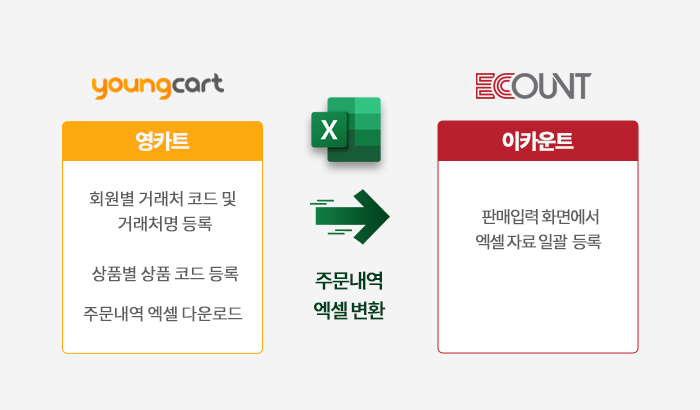 기존에 이카운트 ERP 프로그램으로 제조, 생산, 품목관리를 하고, 영카트로 쇼핑몰 운영을 하고 계시다면 이카운트와 영카트가 연동이 되지 않아 주문내역을 일일히 입력해주어야하는 번거로움이 있었습니다.