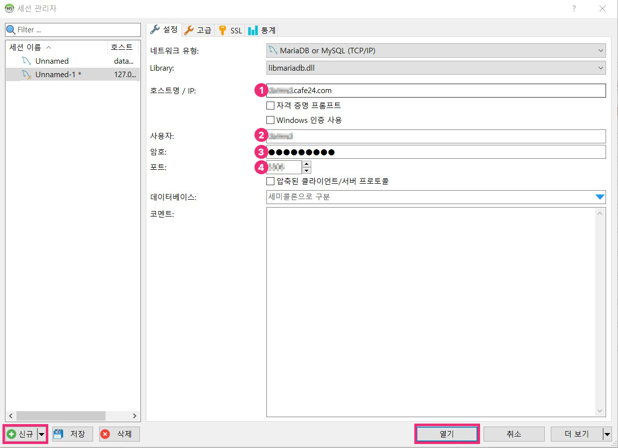 카페24 DB 접속 방법 (phpMyAdmin 설치 없이 HeidiSQL로 연결하기)