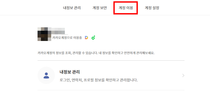2. 상단 메뉴에서 [계정 이용]을 클릭한다.