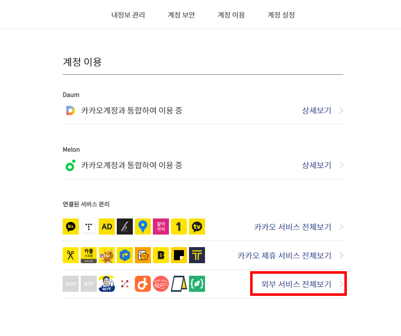 3. 연결된 서비스 관리에서 [외부 서비스 전체보기]를 클릭한다.