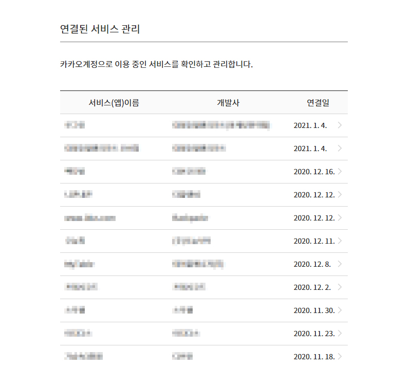 4. 그동안 카카오톡 소셜 로그인으로 연결한 사이트들을 모두 볼 수 있다.
