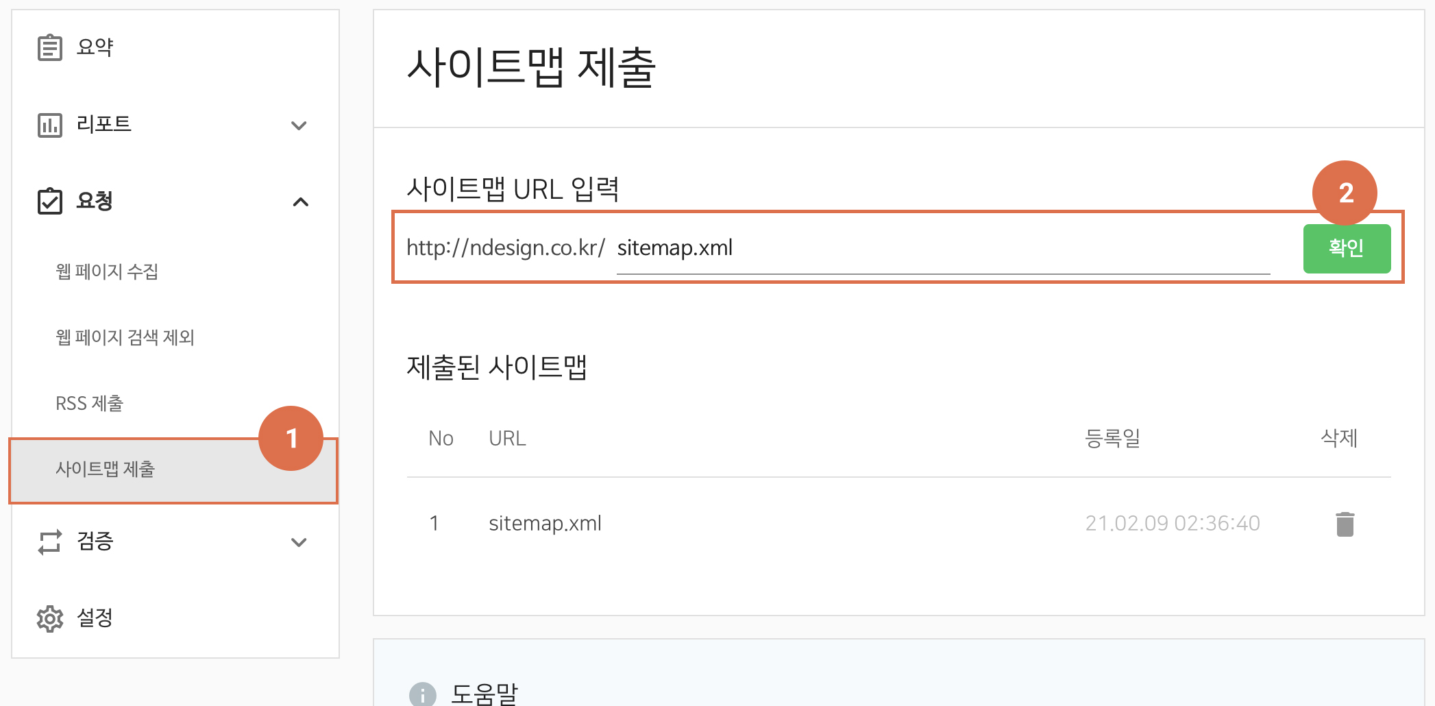 네번째, 사이트맵 제출 (선택)