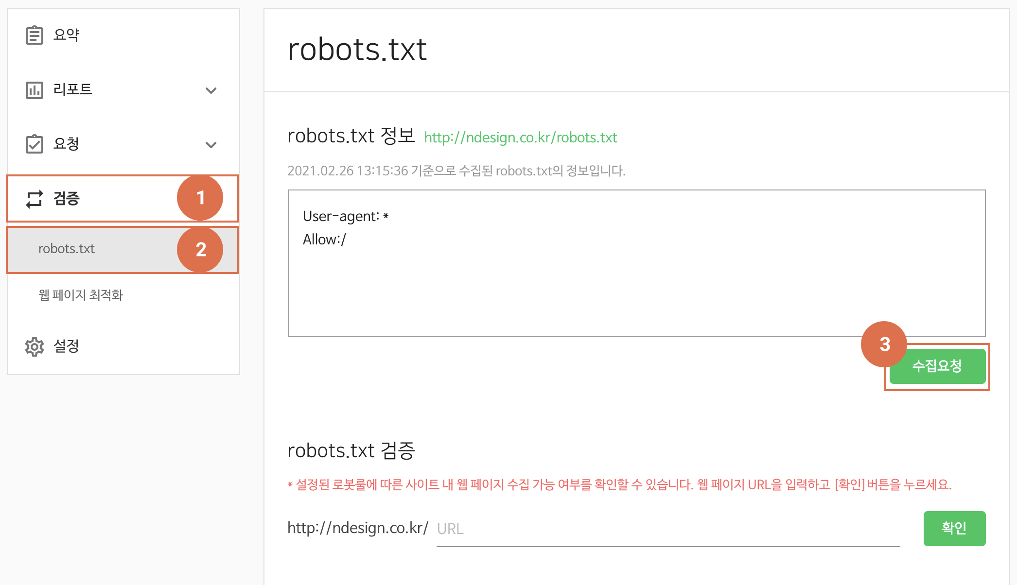 | □ robots.txt 파일을 업로드하고 수집 요청하였는가 |
