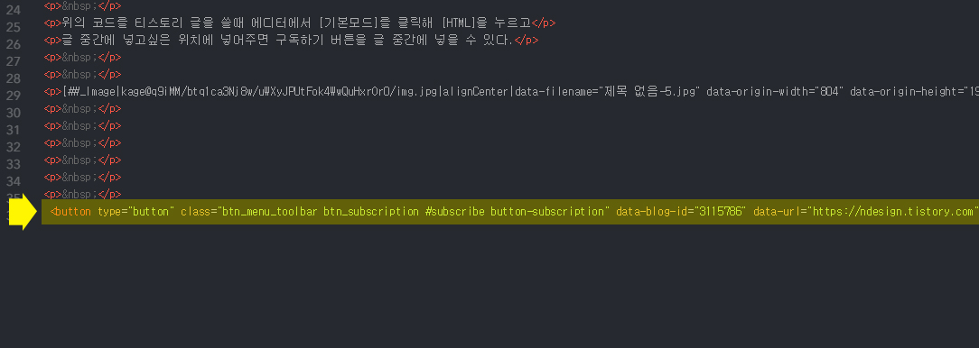 하지만 한가지 단점이 있다면 티스토리 기본으로 제공되는 위치 외에 별도의 코드로 구독하기 버튼을 넣으면