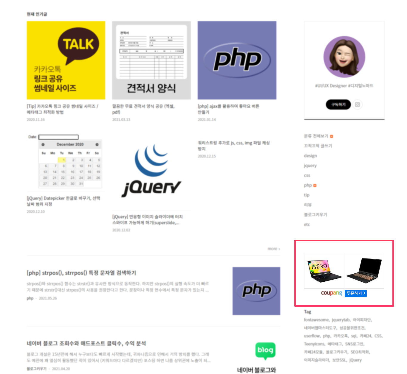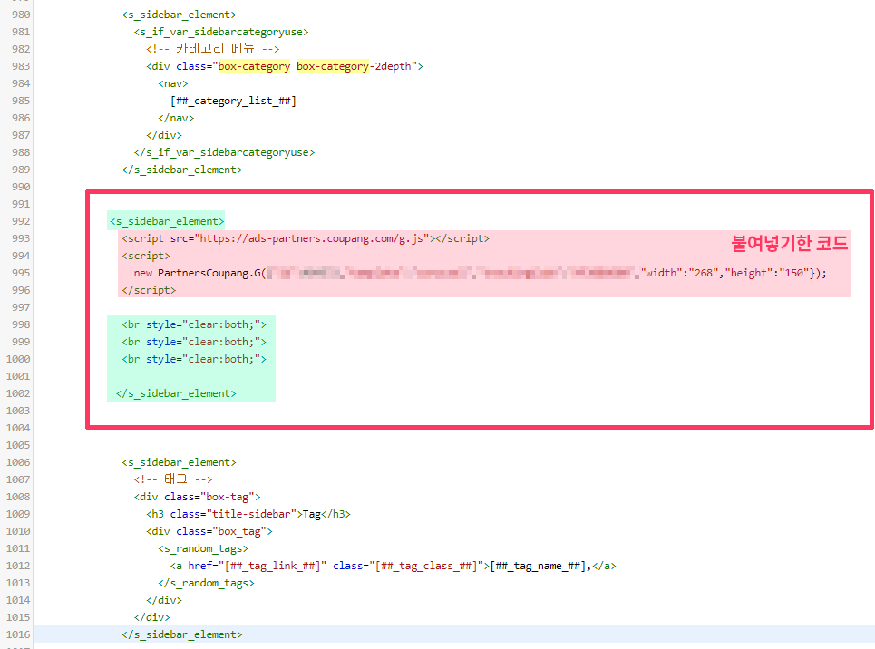 사이드바에 쿠팡 상품 배너 넣기