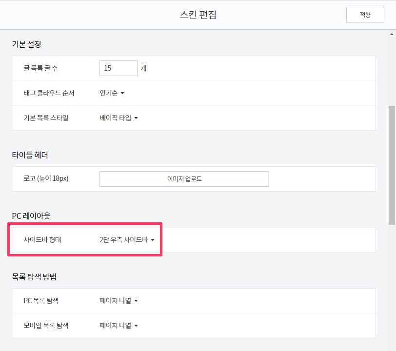 혹시 사이드바가 없다면 꾸미기 > 스킨편집에서 PC레이아웃 사이드바 형태를 "2단 우측 사이드바"로 변경해주세요.