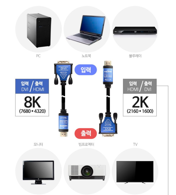 DVI-D, DVI-I 상관없이 사용할 수 있다고해서 구입하였다.