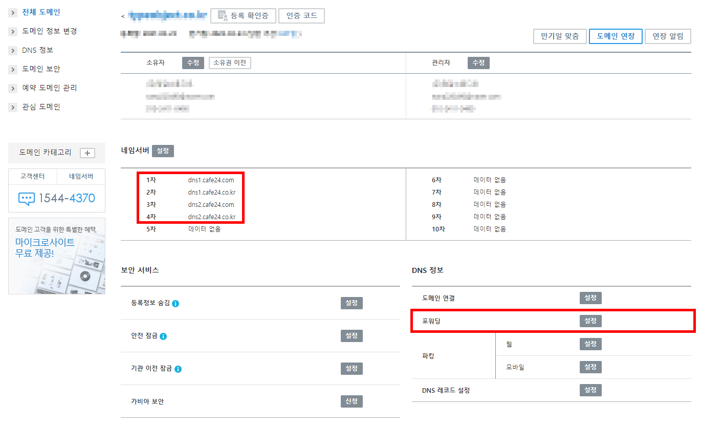 포워딩 기능을 모두 해제하고, 네임서버를 카페24로 변경하면 된다.