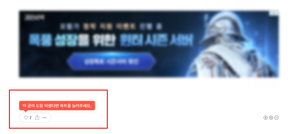 티스토리 글 하단 하트 클릭하는 부분에 "이 글이 도움되셨다면 하트를 눌러주세요" 안내 문구를 넣는 방법을 공유하고자한다. 이런 문구가 있다면 글에 도움을 받은 분들이 조금 더 적극적으로 하트를 누르지 않을까해서 안내 멘트를 넣게 되었다.