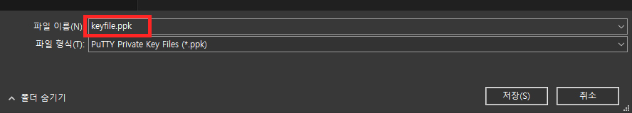 4. 저장할 때 .ppk 확장자를 붙여주면 끝!
