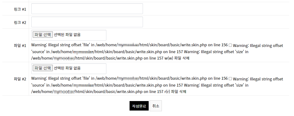 Warning: Illegal string offset 'file' in /web/home/xxx/html/skin/board/basic/write.skin.php on line 156