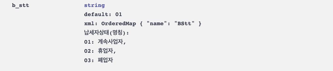 b_stt 값이 01이면 계속사업자, 02는 휴업자, 03은 폐업자